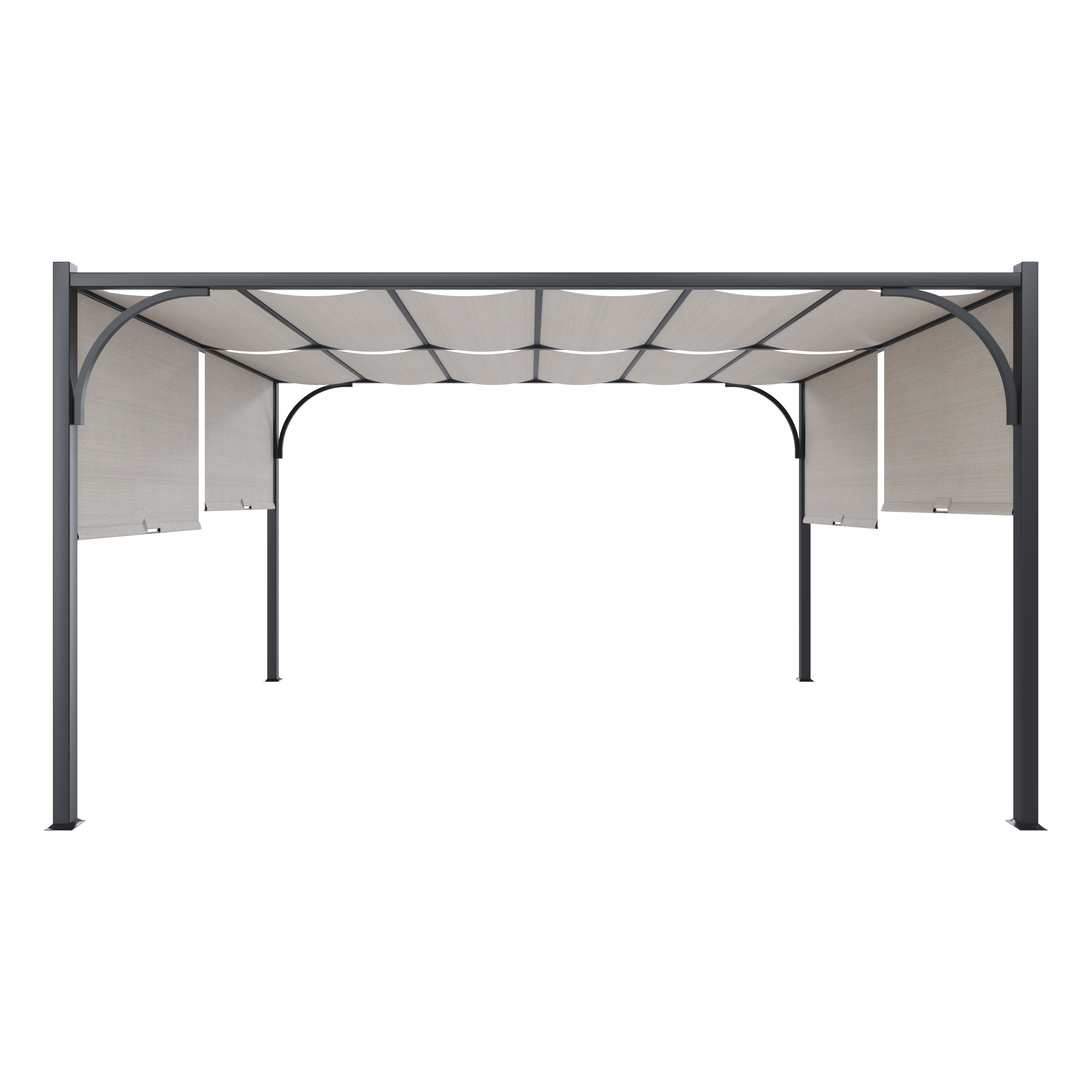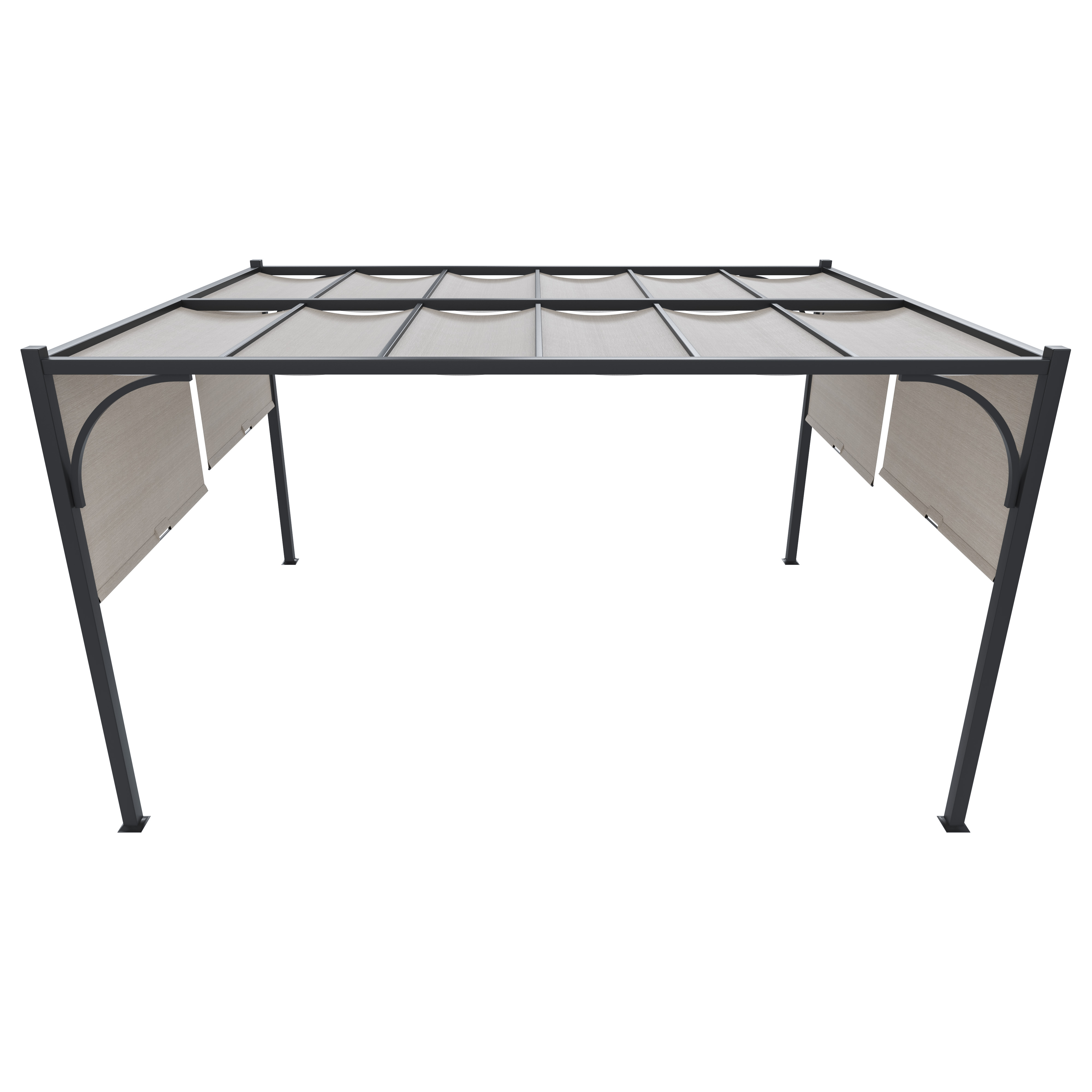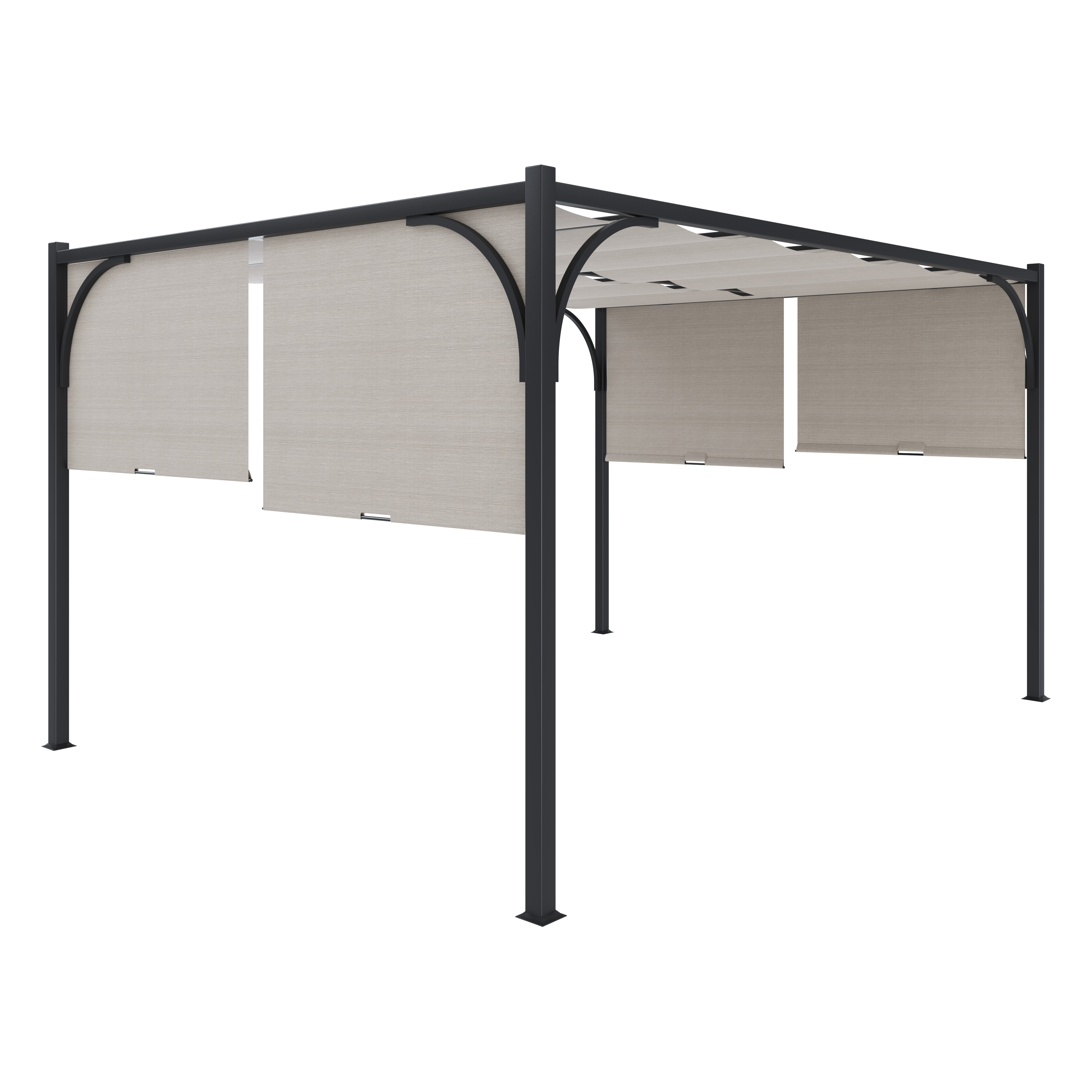 Gazebo Pergola 3x3 M Pergolato Con Tetto Scorrevole Telo Colore Beige Impermeabile Retrattile Richiudibile Struttura Nera In Acciaio Giardino Terrazzo Piscina Esterno Campeggio Design Elegante Moderno